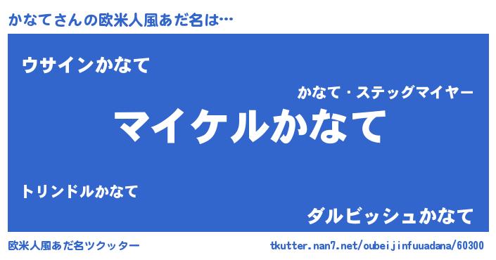 | 男性向けラノベタイトル風あだ名 | 『かなての憂鬱』 |