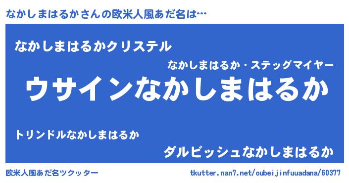 | 男性向けラノベタイトル風あだ名 | 『なかしまはるかの嫁は女の子じゃないと思った?』 |