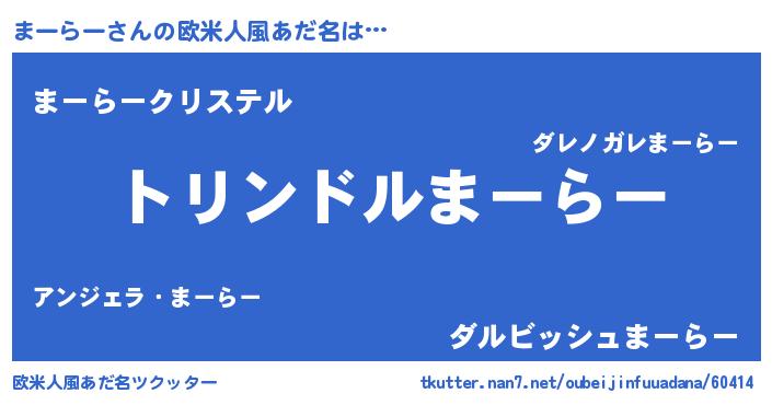 | 男性向けラノベタイトル風あだ名 | 『転生したらまーらーだった件』 |