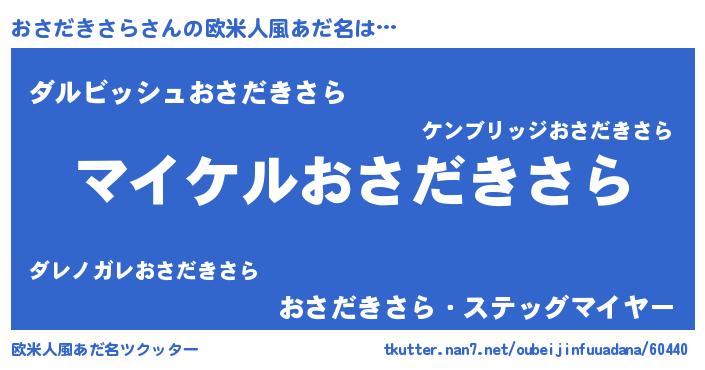 | 女子向けラノベタイトル風あだ名 | 『おさだきさら姫と円卓の騎士』 |