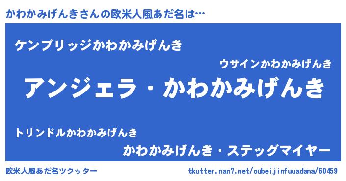 | 男性向けラノベタイトル風あだ名 | 『かわかみげんきに滅ぼされるだけの簡単なお仕事です』 |