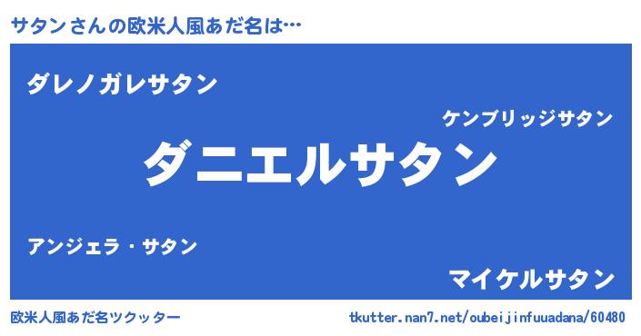 | 女子向けラノベタイトル風あだ名 | 『サタン夫妻のなれそめ』『闇のサタン』 |