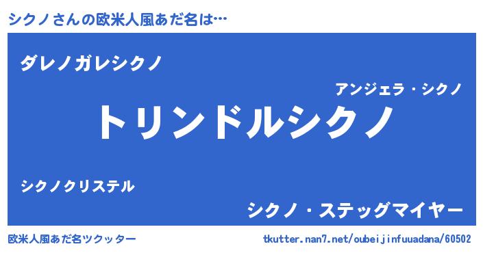 | 男性向けラノベタイトル風あだ名 | 『シクノスレイヤー』『魔弾の王とシクノ』 |