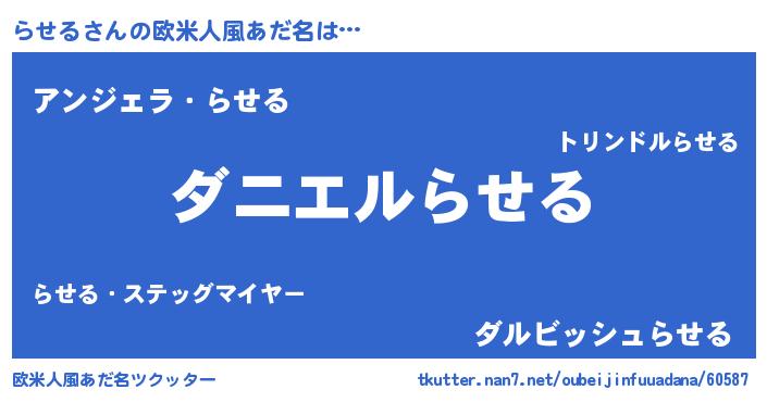 | ヒーロー風カッコイイあだ名 | 『慈愛の使者らせる』『ネオラセル』 |