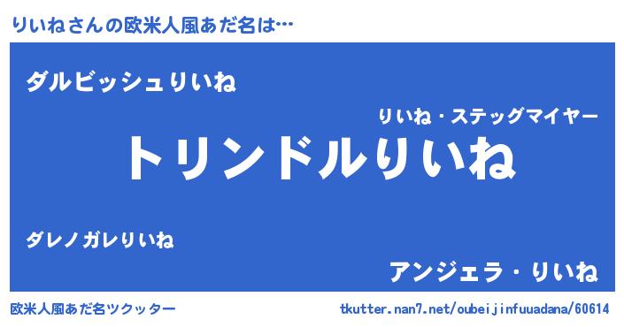 | 女子向けラノベタイトル風あだ名 | 『りいねの玉の輿計画!』 |