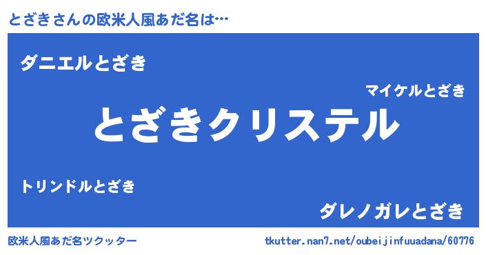 | 女子向けラノベタイトル風あだ名 | 『とざきの婚約者』『死神とざきの再婚』 |