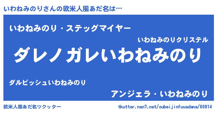 | 男性向けラノベタイトル風あだ名 | 『魔弾の王といわねみのり』 |