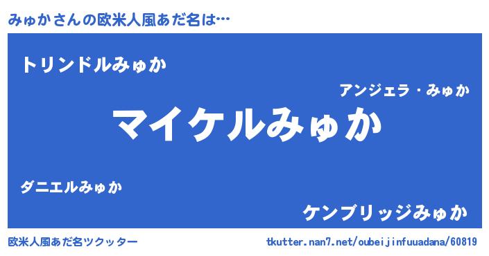 | 男性向けラノベタイトル風あだ名 | 『ミュカアートオンライン』 |
