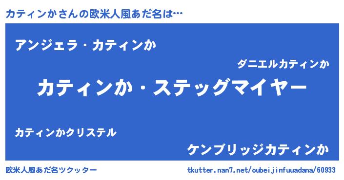 | 男性向けラノベタイトル風あだ名 | 『冴えないカティンかの育てかた』 |