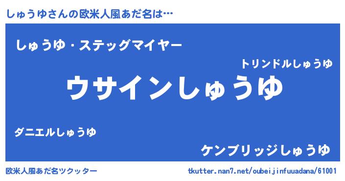 | 男性向けラノベタイトル風あだ名 | 『しゅうゆの嫁は女の子じゃないと思った?』 |