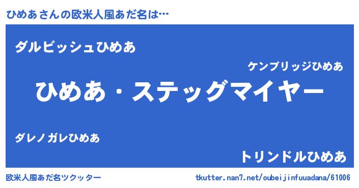 | ヘコむあだ名 | 『ひめあ(小並感)』『ひめっちょ』 |