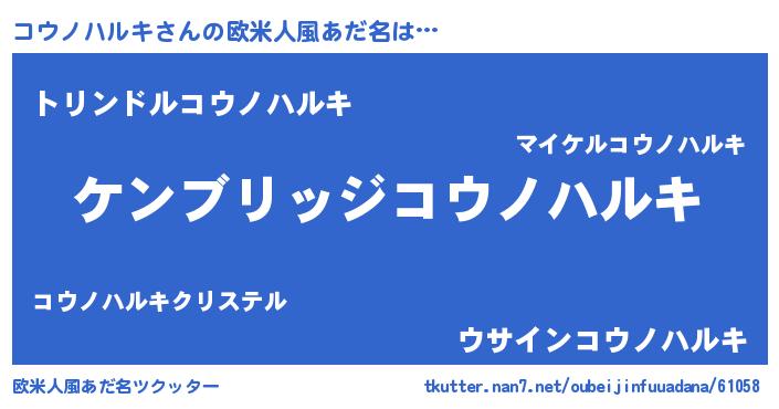 | 女子向けラノベタイトル風あだ名 | 『コウノハルキストレイドッグス』 |