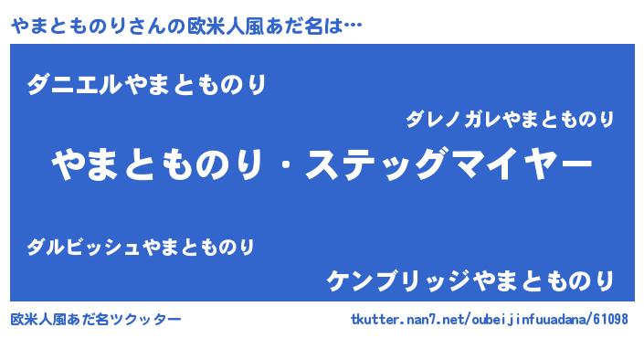 | 男性向けラノベタイトル風あだ名 | 『うちのやまとものりが世界を掌握している!』 |