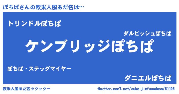 | 男性向けラノベタイトル風あだ名 | 『Re:ぽちぱから始める異世界生活』 |