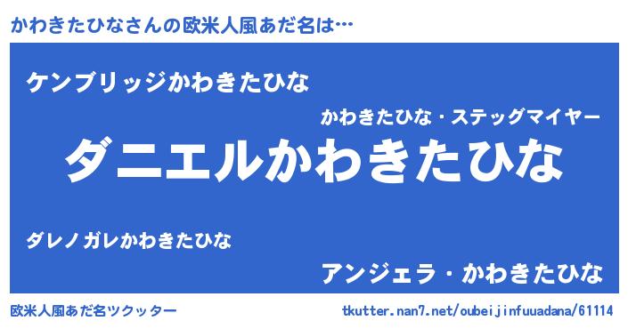 | ヘコむあだ名 | 『かわきたひな(苦笑)』『かわにゅー』 |