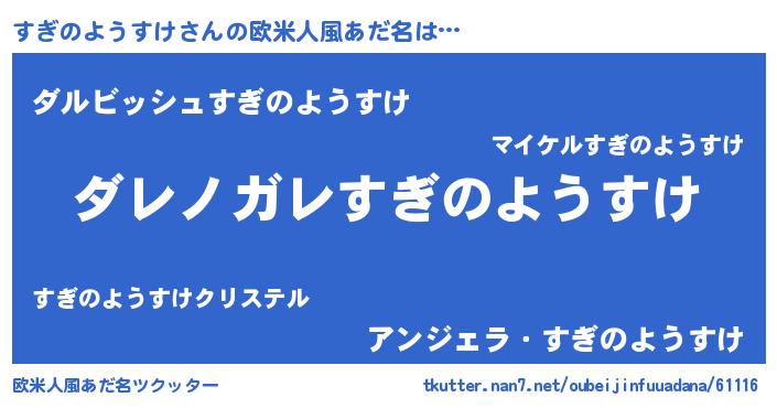 | 意味不明あだ名 | 『住所不定無職すぎのようすけ(50歳)』 |