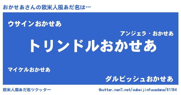 | 男性向けラノベタイトル風あだ名 | 『転生したらおかせあだった件』 |
