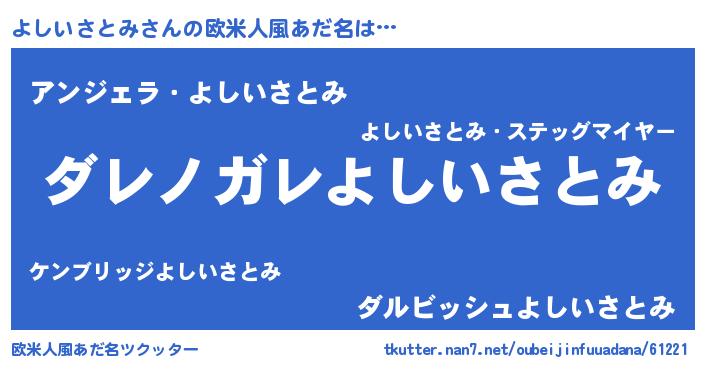 | 男性向けラノベタイトル風あだ名 | 『魔弾の王とよしいさとみ』 |