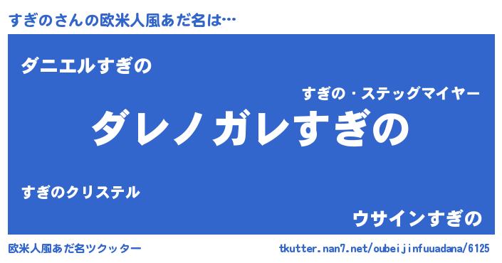 | ヘコむあだ名 | 『すぎっ子』『なまこ酢』『すぎにー』 |