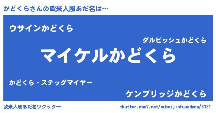 | 男性向けラノベタイトル風あだ名 | 『かどくらの憂鬱』 |