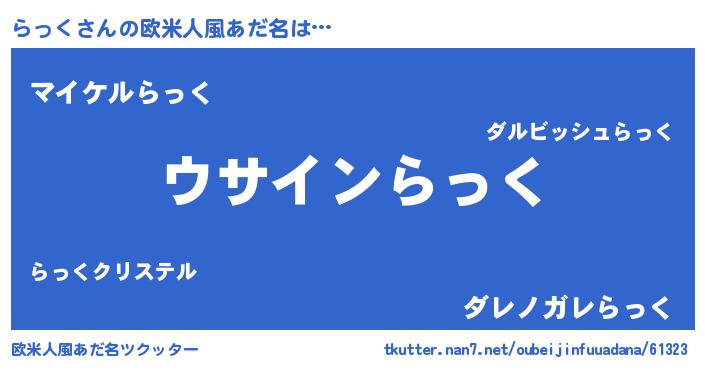 | ヘコむあだ名 | 『らっお』『らっにー』『らっく(笑)』 |
