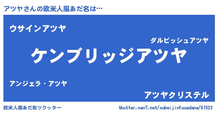 | 男性向けラノベタイトル風あだ名 | 『Re:アツヤから始める異世界生活』 |