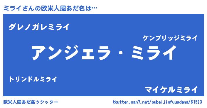 | 意味不明あだ名 | 『住所不定無職ミライ(6歳)』『自称ミライ』 |