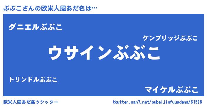 | 男性向けラノベタイトル風あだ名 | 『ダンジョンにぶぶこを求めるのは間違っているだろうか』 |