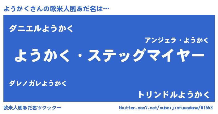 | 男性向けラノベタイトル風あだ名 | 『うちのようかくが世界を掌握している!』 |