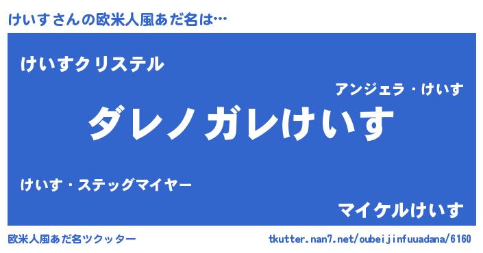 | 男性向けラノベタイトル風あだ名 | 『魔弾の王とけいす』『けいすの憂鬱』 |