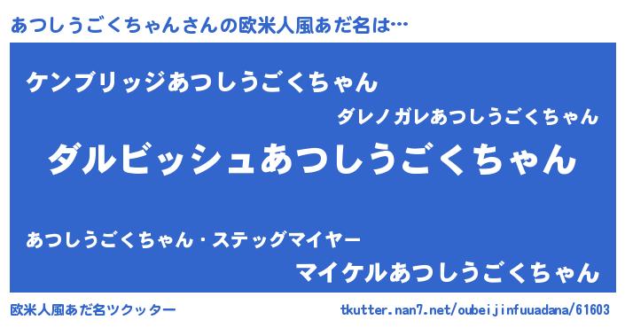 | 意味不明あだ名 | 『永久保存あつしうごくちゃん』 |