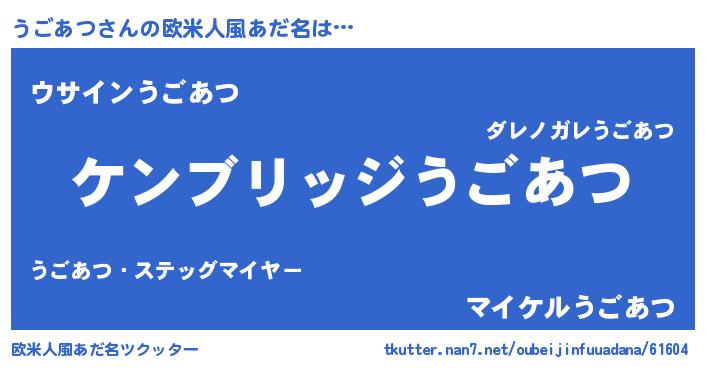 | 男性向けラノベタイトル風あだ名 | 『Re:うごあつから始める異世界生活』 |