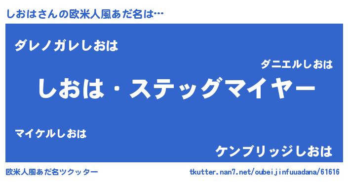 | 意味不明あだ名 | 『住所不定無職しおは(2歳)』『自称しおは』 |