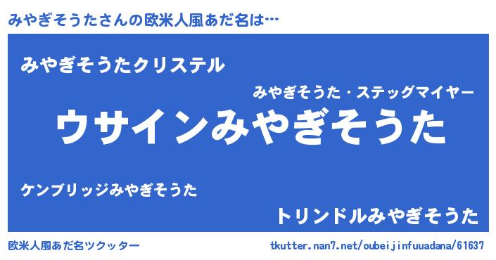 | 男性向けラノベタイトル風あだ名 | 『みやぎそうたの嫁は女の子じゃないと思った?』 |