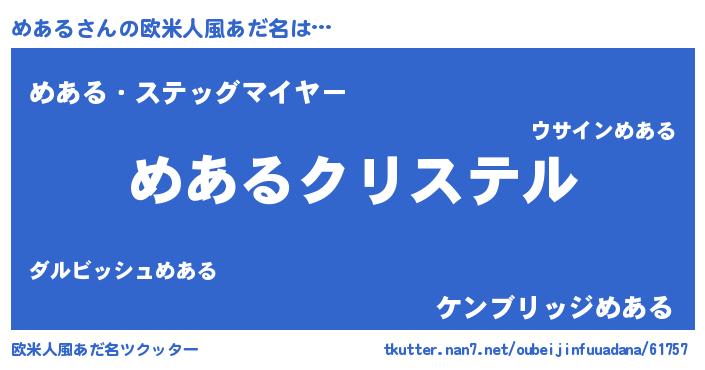 | 意味不明あだ名 | 『めあるフォーエバー』『自称めある』 |