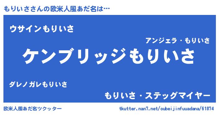 | 男性向けラノベタイトル風あだ名 | 『Re:もりいさから始める異世界生活』 |