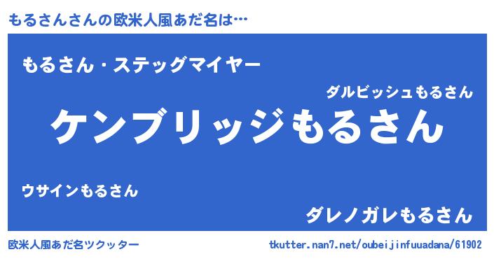 | 意味不明あだ名 | 『自称もるさん』『永久保存もるさん』 |