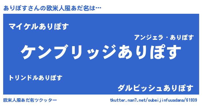 | 男性向けラノベタイトル風あだ名 | 『魔法科高校のありぽす』 |