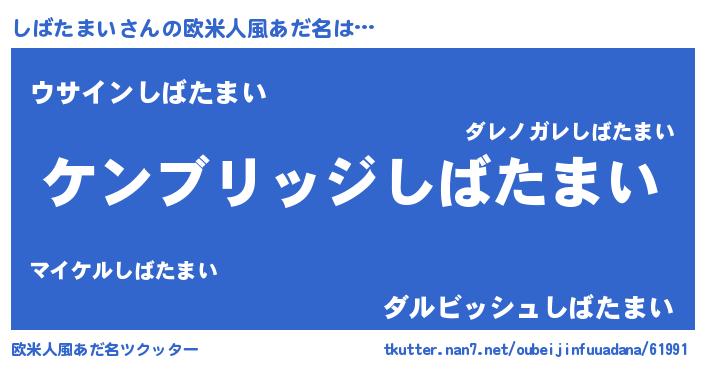 | 男性向けラノベタイトル風あだ名 | 『Re:しばたまいから始める異世界生活』 |