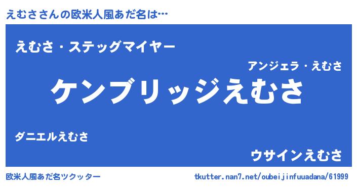 | 男性向けラノベタイトル風あだ名 | 『Re:えむさから始める異世界生活』 |