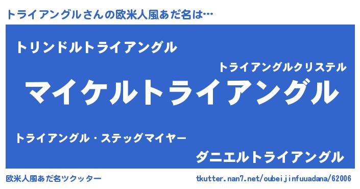 | 男性向けラノベタイトル風あだ名 | 『トライアングルアートオンライン』 |