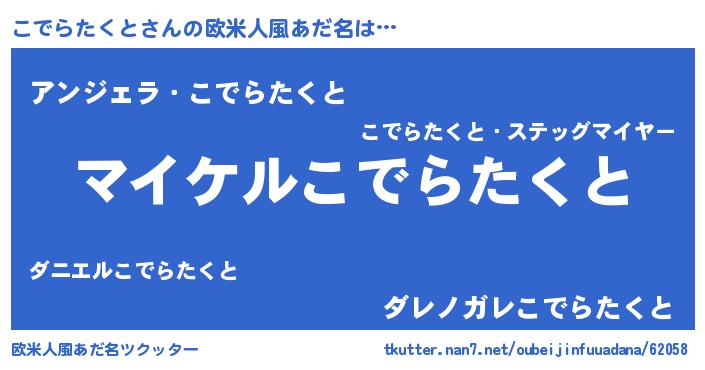 | 男性向けラノベタイトル風あだ名 | 『こでらたくとの憂鬱』 |