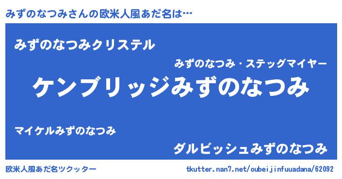 | 女子向けラノベタイトル風あだ名 | 『みずのなつみアンティーク』 |