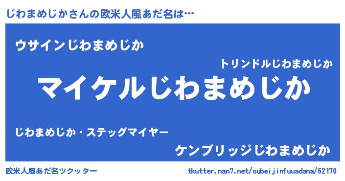 | 胡散臭い通販商品みたいなあだ名 | 『億万長者になれる霊験あらたかなお札…その名も「じわまめじか」』 |