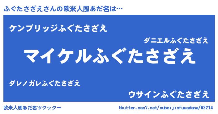 | 男性向けラノベタイトル風あだ名 | 『ふぐたさざえの憂鬱』 |