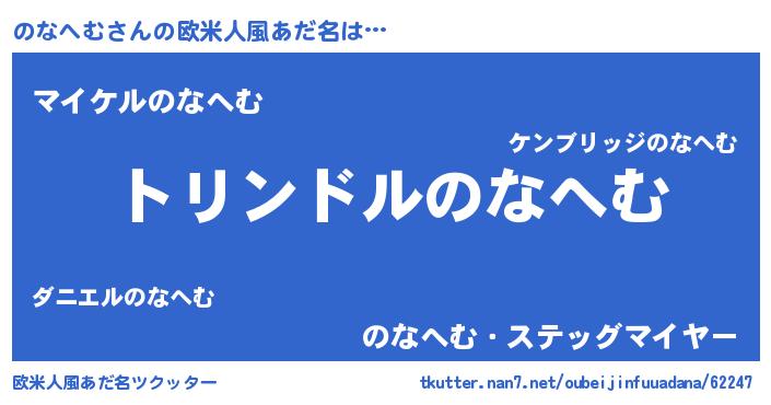 | 男性向けラノベタイトル風あだ名 | 『転生したらのなへむだった件』 |