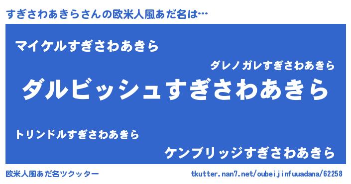 | 意味不明あだ名 | 『永久保存すぎさわあきら』 |