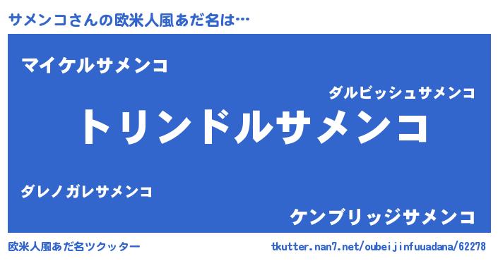 | 意味不明あだ名 | 『もやし科サメンコ属』『自称サメンコ』 |