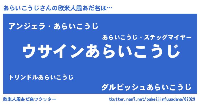 | 男性向けラノベタイトル風あだ名 | 『あらいこうじの嫁は女の子じゃないと思った?』 |