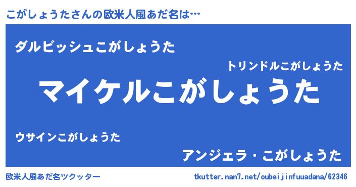 | 女子向けラノベタイトル風あだ名 | 『こがしょうた姫と円卓の騎士』 |